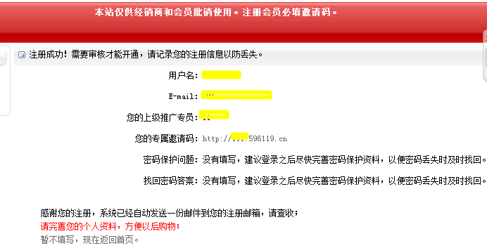 会员注册教程 1.进入本站注册页面,本站实行邀请注册制,邀请码也就是推介人在本站的登录名,红*号为必填项: