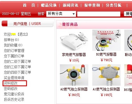 5.进入平台点击左侧“资料修改”: