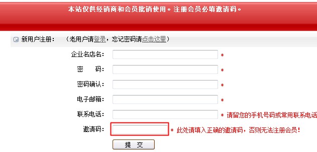 会员注册教程 1.进入本站注册页面,本站实行邀请注册制,邀请码也就是推介人在本站的登录名,红*号为必填项:
