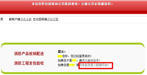 4.登录后“点击此处进入批销平台”即可进入平台下单界面: